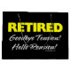 Retiré : Au revoir pension de tension bonjour ! Dire plein d'esprit et drôle de retraite/citation pour n'importe qui qui se retire. L'arrière - plan noir peut être changé pour changer en n'importe quelle couleur que vous voulez.