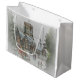 Grand Sac Cadeau Père Noël ancienne avec enfants devant une église