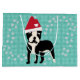 Ce drôle, mignon dessin animé style noir et blanc Boston Terrier chien debout heureux tout en portant un chapeau de Père Noël. Conception par Diane Blackman