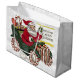 Grand sac cadeau brillant avec une image vintage des années 40 de Saint Nick glacé saluant de sa voiture ornée de bonbons de menthe poivrée dans la neige tombée. Voir les sacs-cadeaux moyens, petits et vins assortis, la carte de voeux, l'enveloppe, les confettis, le ballotin, la marque de faveur, le étiquette, l'autocollant rond, l'autocollant vinylique sur mesure et le papier d'emballage. Voir toute la collection de sacs cadeaux de Noël dans les TOUCHES SPÉCIALES| Section Favoris.