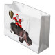 Grand Sac Cadeau Père Noël montant sur l'hippopotame