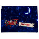 Design propose un mignon avion rouge avec Père Noël volant comme pilote dans le ciel bleu de minuit plein d'étoiles et de lune brillante. L'avion porte aussi une bannière portant le nom de l'enfant. Customisez ce produit avec vos détails spécifiques. Ce serait parfait pour ce petit aviateur ! Copyright Soar In Style Designs LLC.