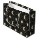Élégant sac cadeau avec phase lunaire et motif céleste présentant des croissants de lune, des étoiles et des détails lunaires radieux sur un fond sombre. Idéal pour les amateurs d'astrologie, les passionnés de lune, les chercheurs spirituels, les observateurs d'étoiles et les fans de style céleste mystique.