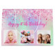 Pour un 16ème anniversaire girly et glamour (ou n'importe quel âge). Un arc-en-ciel, arrière - plan de couleur holographique en violet rose, brille. Personnalisez et ajoutez 3 photos et 16 ans/texte.
