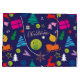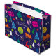 Sac cadeau de Noël coloré Grand sac avec icônes de Noël colorées sur arrière - plan bleu marine. Idéal pour conclure vos cadeaux pour votre ami de pickleball ou membre de la famille
