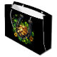 Sac cadeau avec une image thématique de la Saint Patrick. Un fer à cheval noir et or assis dans un lit de trèfle vert avec des pièces d'or brillantes.
