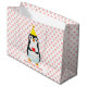 Grand Sac Cadeau Pingouin mignon avec Motif cardiaque