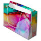 sac cadeau de grande taille avec un design artistique abstrait sophistiqué. Peinture aquarelle avec les couleurs mélangeant et mélangeant créant un motif marbré fluide.