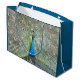 Glamorisez votre cadeau avec ce grand sac cadeau de style avec garniture bleue turquoise qui dispose d'une photo d'un magnifique Peacock bleu avec plumage fantastique coloré. Sélectionnez votre style de sac cadeau.