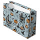 Ce grand sac-cadeau d'Halloween, artistique mais élégant, présente des illustrations dessinées à la main à l'encre noire par Nathalie Portet. Contre un bel arrière - plan bleu français, des images de chariots victoriens pour bébés, de casquettes sorciers, de corbeaux noirs, de citrouilles, de toiles d'araignée, de chaudrons et de minuscules champignons mouchetés ornent ce sac cadeau. Idéal pour les Baby showers d'Halloween, 1er Halloween, 1er Anniversaire, Bébé d'Octobre, Nouvelle Mère, etc.