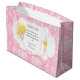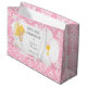 Premier sac cadeau de Merci de cheveux blonde Communion à présenter à vos invités après la cérémonie avec un motif Damas rose. Tout le texte peut être modifié selon vos propres exigences. Graphiques de BlackCatsMedia et Zenentrepdesigns.