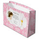 Première communion Brunette Hair Girl Merci sac cadeau à présenter à vos invités après la cérémonie avec un motif Damas rose. Tout le texte peut être modifié selon vos propres exigences. Graphiques de BlackCatsMedia et Zenentrepdesigns.