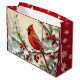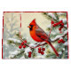 A beautiful Christmas gift bag with an illustration of a red cardinal on a pine tree branch with red berries and snow.