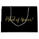 "Serez-vous ma servante d'honneur ?" Sac cadeau Proposition moderne avec le titre "Will You Be My Maid of Honor?" en or style de police de script moderne sur arrière - plan noir. Remarque : Les détails du papier sont simulés dans l'illustration. Il n'y aura pas de métal sur ce produit.