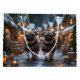 This festive design captures the joyful spirit of the holiday season, featuring an adorable dogs.Nestled in a winter wonderland, complete with a decorated Christmas tree, and beautifully wrapped presents. Snowflakes gently fall, adding a magical touch to the scene, while the vibrant colors of the holiday decorations create a warm and cheerful atmosphere.