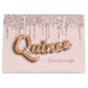 Elégant, classique, glamour et girly pour une Quinceañera, 15ème anniversaire. Un arrière - plan rose vif chic. Décoré d'or rose, de gouttes de parties scintillant rose, de la peinture goutte à goutte. Personnalisez et ajoutez un nom. Avec le texte : coing écrit avec un script de style bulle. Personnalisez et ajoutez un nom.