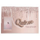 Un sac cadeau pour une Quinceañera girly et glamour, 15e anniversaire. Un dégradé d'or rose arrière - plan avec de l'or rose et de faux parties scintillant rose gouttes, la peinture goutte à goutte. Personnalisez et ajoutez une photo et le nom de la fille d'anniversaire. Le mot Quince est écrit en or rose avec une police de style ballon.