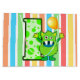 Un monstre vert mignon, sac rayé de fête d'anniversaire d'arrière - plan pour votre un an ! Les approvisionnements assortis de partie sont disponibles.