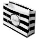 Un solide noir et blanc futé barre le sac de grande taille de cadeau. Personnalisez ce motif classique en ajoutant l'initiale nommée et décorée d'un monogramme de votre destinataire. Cette conception fraîche de monogramme fait partie de la collection noire de couleur d'été de bases de partie.