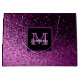Dégradé de paillettes fausses profond violet et rose. Un cadre noir et violet avec un espace pour le nom de la future mariée et la lettre de monogramme. Le nom est écrit en blanc avec un style de lettre main moderne. Lettre de monogramme en violet. Parfait pour une douche de mariée.