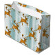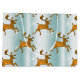 Grand Sac Cadeau Rennes d'or sur Pale Aqua Christmas