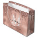 Grand Sac Cadeau Rose Gold Métallisé Glitter Gouttes Roses