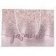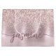 Sac personnalisé avec monogramme de nom de signature de style script personnalisé métallisé avec strass rose doré et blush. Ce design présentant votre prénom dans une jolie typographie de signature de style lettrage à main (ou calligraphie) avec une fausse feuille métallique rose dorée et rose blush avec une bordure de strass glamour. Ceux-ci sont faciles à personnaliser. Ce sac cadeau féminin est idéal pour un cadeau de pendaison de crémaillère, également pour un anniversaire, la fête des mères, un mariage, une fête d'anniversaire pour les 16 ans, une douche de mariée, une douche de bébé, un cadeau de fête de fin d'études et c'est pour la fille qui aime les choses uniques et élégantes avec des paillettes.