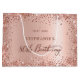 Girly Glam Modern Rose Gold Parties scintillant Foil Monogramme Nom 80e (ou N'IMPORTE QUEL ÂGE) Anniversaire Sac cadeau personnalisé personnalisé. Cette Fille Adulte Fête d'Anniversaire féminin avec un nom Monogram dans un script de calligraphie écrit à la main et date et âge sur rose rousse ou rose faux feuille métallique brossé arrière - plan avec cadre de parties scintillant glam lâche. Idéal pour une fête d'anniversaire féminine adulte ou féminine, cela saisit parfaitement l'essence d'une fête d'anniversaire rose moderne en or ou en parties scintillant rose vif.