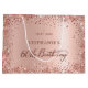Girly Glam Modern Rose Gold Parties scintillant Foil Monogramme Nom 60e (ou N'IMPORTE QUEL ÂGE) Anniversaire Sac cadeau personnalisé personnalisé. Cette Fille Adulte Feminine SIXTIETH (SIXTIETH) conception de fête d'anniversaire avec un nom de monogramme dans un script de calligraphie manuscrit élégant et date et âge sur rose rousse ou rose faux feuille métallique brossé arrière - plan avec cadre de parties scintillant glam lâche. Idéal pour une fête d'anniversaire féminine adulte ou féminine, cela saisit parfaitement l'essence d'une fête d'anniversaire rose moderne en or ou en parties scintillant rose vif.