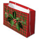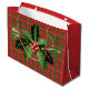 Grand Sac Cadeau Rouge de Noël Vert Étoiles Carreaux avec Couronne