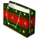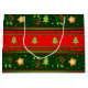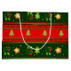Présentez vos cadeaux avec style ! Parfait pour les cadeaux festifs, ce Grand Sac Cadeau, avec de grandes rayures horizontales rouges et vertes, agrémenté d'arbres de Noël verts, de fleurs rouges avec des feuilles verts et de jolies étoiles dorées, ajoutera une éclat de couleur à votre cadeau. C'est une excellente façon de présenter toute surprise spéciale ce Noël !