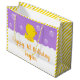 Grand Sac Cadeau Rubber Ducky Jaune et Violet Joyeux anniversaire