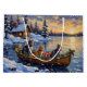 Bring elegant, silver-blue charm to your holiday season with this stunning Russian Blue Cat Christmas design! This magical scene features three sleek, graceful Russian Blue Cats with their characteristic emerald eyes, sitting calmly in a cozy wooden boat, gently floating on a serene snowy lake at sunset. The boat is beautifully adorned with glowing Christmas string lights and fragrant pine garlands, while the cats wear festive scarves. They are surrounded by colorful wrapped presents and cheerful holly branches. Soft snowflakes gently fall, and the shimmering reflection of the lights on the water creates a truly magical winter holiday atmosphere. This design is a perfect Christmas gift for any Russian Blue owner, cat lover, or admirer of festive and magnificent feline art, capturing the serene joy of the season.