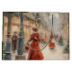 Sac cadeau de vacances de Noël présentant une illustration vintage à l'aquarelle d'un cadre de Noël victorien avec des dames en rouge faisant des achats dans un paysage urbain enneigé décoré pour les fêtes.