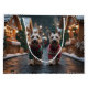 This festive design captures the joyful spirit of the holiday season, featuring an adorable dogs.Nestled in a winter wonderland, complete with a decorated Christmas tree, and beautifully wrapped presents. Snowflakes gently fall, adding a magical touch to the scene, while the vibrant colors of the holiday decorations create a warm and cheerful atmosphere.