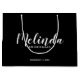 Script moderne Black and White Personnalisé Bridesmaids Sac cadeau avec nom de femme d'honneur personnalisée en blanc style de police de script moderne avec titre et date mariage dans le style de police sans serif moderne sur arrière - plan noir. Aussi parfait pour Maid of Honor, Flower Girl, Mother of the Bride, Groomsmen, Best man et plus.