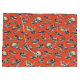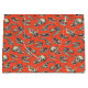 Ce sac cadeau comporte des crânes de dinosaure illustrés à la main en bleu marine et de la crème sur un arrière - plan rouge-orange vif.