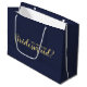 "Serez-Vous Ma Femme D'Accueil ?" Le sac cadeau de proposition moderne comporte le titre "Will You Be My Bridesmaid?" en or style de police de script moderne sur arrière - plan bleu marine. Remarque : Les détails du papier sont simulés dans l'illustration. Il n'y aura pas de métal sur ce produit.