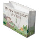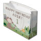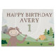 This charming Slumberkins birthday gift bag features the friendly Bigfoot character in a cozy woodland scene designed to celebrate a special day. Bigfoot is shown waving with a sweet smile, surrounded by rolling green hills, trees, clouds, and campsite details that reflect the calm and playful Slumberkins aesthetic. The design includes “Happy Birthday” text along with a customizable name and age, making it a fun and personal addition to any kids’ birthday celebration. Perfect for party favors or gifts, this bag adds a warm, whimsical touch inspired by the Slumberkins world.