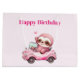 Sac cadeau avec une illustration fantaisiste. Un paresseux rose qui circule dans une décapotable rose. Adorable.