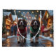 This festive design captures the joyful spirit of the holiday season, featuring an adorable dogs.Nestled in a winter wonderland, complete with a decorated Christmas tree, and beautifully wrapped presents. Snowflakes gently fall, adding a magical touch to the scene, while the vibrant colors of the holiday decorations create a warm and cheerful atmosphere.