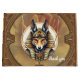 Steampunk Anubis Fox Portrait - Mythologie égyptienne Imaginaire Art. Ce design unique présente un Steampunk Anubis Fox Portrait détaillé - une fusion créative de la mythologie égyptienne et de style steampunk rétro-futuriste. Le renard aux caractéristiques similaires à celles d'Anubis porte des lunettes à vapeur frappantes, une coiffure rayée bleu et or et des vêtements égyptiens ornés de détails métalliques. Entourée d'un cadre décoratif et placée contre un arrière - plan flou aux tons chauds, cette oeuvre attire l'attention. Parfait pour les amateurs de steampunk, d'imaginaire, d'Egypte, de créatures mythiques et d'art extraordinaire.
