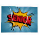 Vous êtes plus qu'une super star ; vous êtes un super héros ! Faites savoir à votre diplômé avec cette bande dessinée cool design avec le mot "SENIOR" sur un arrière - plan rétro. Excellente façon d'envelopper un cadeau lorsque la saison de remise des diplômes tourne autour ou pour commencer une nouvelle année scolaire.