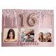 Un sac cadeau pour un Sweet 16, 16e anniversaire girly et glamour. Un faux arrière - plan rose à l'allure métallique avec des gouttes de parties scintillant faux, la peinture goutte à goutte. Personnalisez et ajoutez 3 photos et un nom. Le numéro 16 est écrit avec une police de style ballon. Parfait comme un sac de fête ou comme un sac cadeau.