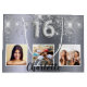 Un sac cadeau pour un Sweet 16, 16e anniversaire girly et glamour. Un arrière - plan faux argenté avec de la poussière de parties scintillant. Personnalisez et ajoutez 3 photos et un nom. Le numéro 16 est écrit avec une police de style ballon. Parfait comme un sac de fête ou comme un sac cadeau.