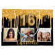 Un sac cadeau pour un Sweet 16, 16e anniversaire girly et glamour. Un arrière - plan noir avec de faux gouttes de parties scintillant d'or, la peinture goutte à goutte. Personnalisez et ajoutez 3 photos et un nom. Le numéro 16 est écrit avec une police de style ballon. Parfait comme un sac de fête ou comme un sac cadeau.