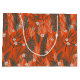 Ce motif de papier d'emballage à thème de Noël présente de la verdure de Noël avec de jolies fleurs blanches avec un arrière - plan personnalisé rouge-orange.