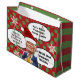 Un drôle de sac cadeau de vacances qui fera certainement ressortir votre cadeau et causer un gâchis ou deux. Trump portant un chapeau de Père Noël et les saluant, "Personne ne dit : "Joyeux Noël" Mieux que moi...Je veux dire personne" "Je n'expulserai pas Père Noël" et "Rendons Noël grand à nouveau"