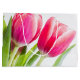 Sac cadeau avec une belle photo de printemps avec 2 tulipes roses et feuilles vert vif.