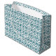 Grand Sac Cadeau Turquoise sur Motif ethnique blanc, Fleurs, Chevro